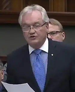 O'Toole scored a significant victory over incumbent New Democrat Gord Mills in the provincial election of 1995, scoring 62 per cent of the popular vote.[5] He was re-elected in the 1999 election, again without difficulty.[6] He was appointed as parliamentary assistant to several ministers including Consumer and Commercial Relations, Finance, and Health and Long-Term Care.