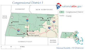 Massachusetts's 1st congressional district, during the second decade of Olver's tenure. The district was a primarily rural district that makes up most of Western Massachusetts.