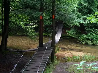 ![]() Suspension bridge over Clear Shade Creek, between the two loops of the John P. Saylor Trail. | |