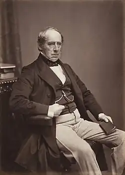 Pakington served under Lord Derby's one-year administration, as Secretary of State for War and the Colonies in 1852.[1] He announced the end of penal transportation to Van Diemen's Land, shortly to be known as Tasmania.[11] He gave the green light to responsible government in New South Wales, which came about in 1855.[12] Pressed by Charles Adderley, he granted New Zealand a constitution qualified by London's control of policy on indigenous peoples.[13]