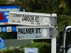 Palmer's name is one of the names inscribed on the gold mayoral chain presented to Rockhampton City Council by Alderman Frederick William Harrap in 1952.[24] The chain, consisting of a double row of medallions, bears the name of all the mayors of Rockhampton since Palmer became the first in 1861.[24] After it was presented to outgoing mayor Henry Jeffries, Jeffries only had one opportunity to wear it at a formal occasion when he hosted a civic reception for Queensland premier and former Rockhampton local Vince Gair.[25] Jeffries' successor Rex Pilbeam continued wearing the chain on formal occasions such as the opening of the new bridge in 1952 and Queen Elizabeth II's visit in 1954.[26][27]