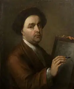In 1762, he returned to England and, the following year, participated in an exhibition at the Free Society of Artists, where he presented a self-portrait and an historical scene, depicting the assassination of David Rizzio.[4] He also exhibited at the Royal Academy of Arts.