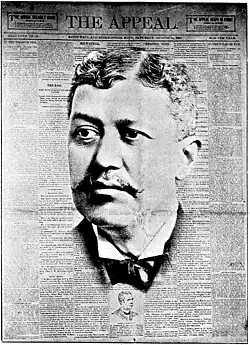 He moved to St. Paul, Minnesota after the sale, where he became associate editor of The Appeal newspaper (then known as The Western Appeal).[1] From 1886 to 1922, he worked at The Appeal newspaper; and in January 1887, Adams was promoted to the newspaper editor.[2][8] With his promotion, Adams became the driving force behind the newspaper.[8] Adams was an influential writer and a staunch Republican, and like other editors of his day, he expressed his opinions through his paper's editorial page. The Appeal received funding directly from the Republican Party, another common practice for newspapers of the time.[8] He transformed the paper into a national publication with newspaper offices in Chicago, Dallas, Minneapolis, St. Louis, and Washington, D.C.[1]