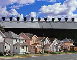 Sanderson's photographs are captured outdoors.[8] His early photographs document the industrial landscapes across his native Northeastern United States.[9] Sanderson began to expand his photographic investigation into the broader American landscape in 2009. It was during this trip through the American Midwest when he made the pivotal photograph Steel Mill and Houses, Lackawanna, New York. Sanderson began photographing the American West in 2015 and returned to Wyoming in 2017 where he spent seven months photographing the Carbon County project.