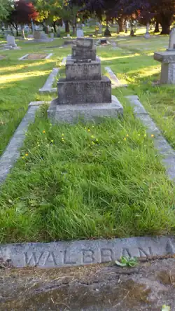 John Thomas Walbran died at St. Joseph's Hospital on 31 March 1913 and was buried in Ross Bay Cemetery in Victoria, British Columbia.[3]