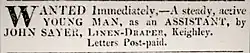 - ^ "To drapers, grocers &c". Leeds Mercury. 7 April 1827. p. 4 col.2. Retrieved 14 February 2023 – via British Newspaper Archive.