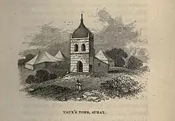 The location of Vaux's Tomb has been mentioned in Daniel Defoe's Robinson Crusoe. The Tomb was also a popular picnic destination and one of the main sights to see in Surat at the time.[2]