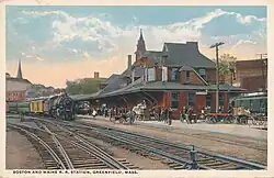 The CRRR was host to a mix of local and long-distance passenger and freight service. It became part of the route for crack New York-Montreal trains as early as the 1860s, and was acquired by the Boston and Maine Railroad in 1893. The Fitchburg Railroad was similarly acquired six years later.[6] Under the Boston and Maine, Greenfield was an important local rail hub for the next century.