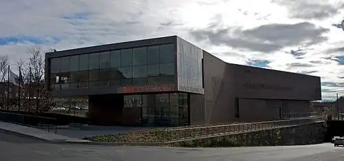 Named after long-time western Massachusetts congressman John Olver, the hub is the first zero net energy transit center in the United States.[1] Built with American Recovery and Reinvestment Act funds, the facility was constructed with solar panels, geothermal wells, copper heat screens and other energy efficient technologies. It houses the FRTA offices and the Franklin Regional Council of Governments, the successor organization to the Franklin County county government.