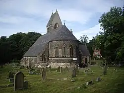 This is a Grade I listed building, founded in the 12th or 13th century.[28] Costing £4,400 (equivalent to £492,453 in 2023),[14][29] It was restored to designs by architect John Wilson Walton,[nb 8][30][31] and re-opened and consecrated by the Bishop of Ripon, on 16 October 1873, after three hundred years of neglect.[32] Walton-Wilson added a chancel, a vestry and an organ chamber.[33] The restoration cost over £4,000 (equivalent to £447,685 in 2023).[14][32] The reredos and pulpit were executed by Robert Beall.[32]