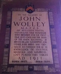- ^ a b Newton, Alfred (1860). "Memoir of the late John Wolley". Ibis. 2 (2): 172–185. doi:10.1111/j.1474-919X.1860.tb06367.x.