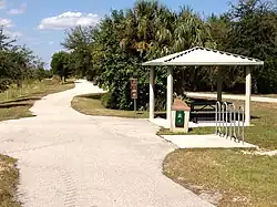 A trailhead with a paved parking lot and restrooms opened at the south end of the trail (at Six Mile Cypress Parkway) opened in early 2022.[9]