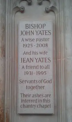 John Yates (17 April 1925 – 26 February 2008) was an Anglican bishop in the Church of England. He was a bishop for 22 years, serving as the Bishop of Whitby from 1972 to 1975, the Bishop of Gloucester[1] from 1975 to 1992 and the Bishop at Lambeth from 1992 to 1994.
