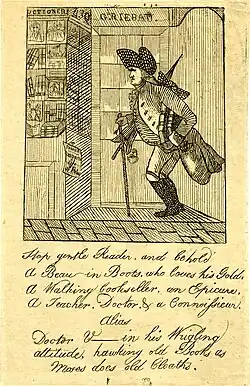 In 1770, he moved to London where he referred to himself as Dr John de Verdion. He translated, taught languages, and traded in books. A trade card of his, preserved in the British Library, lists his name as Mr de Verdion.[7] de Verdion dealt in odd volumes and antiquary books. He would often purchase books at the auction house, sometimes by the coach load, and later resell the volumes to local bookstores. His advice was sought by book purchasers and he gained a reputation for having a good knowledge of English literature.[2] He also collected foreign coins, made from silver and gold, as well as medals.[1]