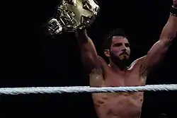 Gargano made his debut for Cleveland–based Absolute Intense Wrestling (AIW) on February 26, 2006, losing to Kano.[10] He would pick up his first victory in the promotion two months later on April 30, defeating Tyrone Evans.[14] On February 24, 2008, Gargano defeated his trainer Josh Prohibition to become the number one contender to the AIW Intense Division Championship.[15] After Gargano's first shot at the title, held by Tyler Black, went to a fifteen-minute time limit draw on March 21, the two were booked in a 30-minute Iron Man match on May 25, where Gargano defeated Black to win the Intense Division Championship for the first time.[10][16][17] Gargano held the title for 187 days before he was stripped of it due to an injury on November 28, 2008.[18] On February 28, 2009, Gargano defeated Jimmy DeMarco, who had won the vacant Intense Division Championship in a tournament, to regain the title.[18] He would go on to lose the title to Josh Prohibition on May 15, 2009.[18]