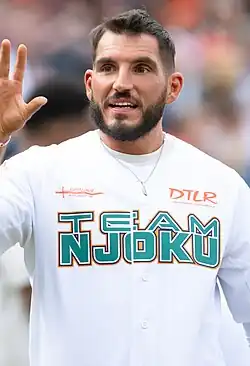 John Anthony Nicholas Gargano[8] (born August 14, 1987) is an American professional wrestler. As of April 2016, he is signed to WWE, where he performs on the SmackDown brand and is one-half of #DIY with Tommaso Ciampa. Gargano is known for his time in NXT, where he became the first-ever NXT Triple Crown winner by winning the NXT Championship once, the NXT North American Championship a record three times, and the NXT Tag Team Championship once. His popularity and success in NXT led him to be given the moniker "The Heart and Soul of NXT".
