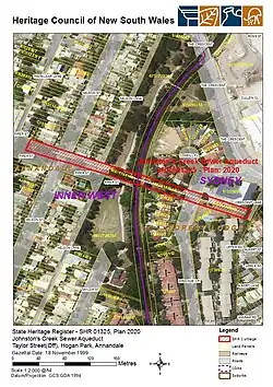 - ^ a b c d e f g h i j k l m n "Johnston's Creek Sewer Aqueduct". New South Wales State Heritage Register. Department of Planning & Environment. H01325. Retrieved 2 June 2018.