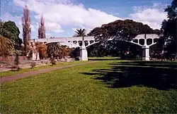 The Johnstons Creek sewage aqueduct was completed in 1897 and is a major and visibly strong component of the Northern Main Sewer extension of the Bondi Ocean Outfall Sewer. The aqueduct arches and carrier are one of the first major constructions undertaken using reinforced concrete in NSW and one of the first in Australia. The slender proportions of the supporting arches and sewage carrier along with its historic technological value are a major landmark for Sydney. The aqueduct is a major element of the historic built environment of the local area, and a long held part of the recreational reserve . The significant elements are its location within a park setting, technology of construction and past and ongoing use.[1]