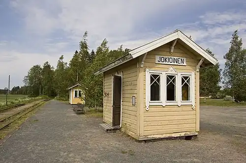 Jokioinen station (Jok, Jockis station in Swedish) is the southernmost station on Jokioinen Museum Railway. The station is located 14.2 kilometres (8.8 mi) from the Humppila station, in the municipality of Jokioinen in Finland.