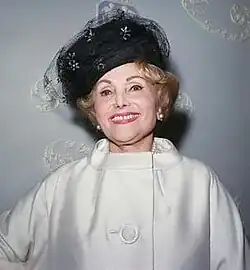 Gabor arrived in the United States on December 30, 1945, aged 49.[7][35][36] She opened a successful costume jewelry business (called simply Jolie Gabor) in New York City in 1946, with $7,200 borrowed from her daughters.[25][37][38] It later moved to 699 Madison Avenue.[39] Gabor also established a branch of the firm in Palm Springs, California. Among the company's designers were Elsa Beck and Stephen Kelen d'Oxylion, as well as her own daughter, Magda.[7][40] One of the saleswomen was Evangelia Callas, mother of future opera diva Maria Callas.[41] In 1953 the store introduced ornamental metal fingernails studded with rhinestones.[42]