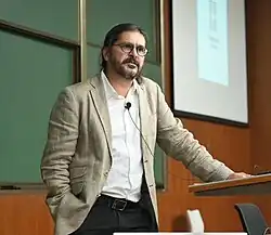 Jonardon Ganeri, FBA, is a philosopher, specialising in philosophy of mind and in South Asian and Buddhist philosophical traditions. He holds the Bimal Matilal Distinguished Professorship in Philosophy at the University of Toronto. He was Global Network Professor in the College of Arts and Science, New York University, previously having taught at several universities in Britain. Ganeri graduated from Churchill College, Cambridge, with his undergraduate degree in mathematics, before completing a DPhil in philosophy at University and Wolfson Colleges, Oxford. He has published eight monographs, and is the editor of the Oxford Handbook of Indian Philosophy. He is on the editorial board of the Stanford Encyclopedia of Philosophy, the British Journal for the History of Philosophy, Philosophy East & West, Analysis, and other journals and monograph series.[1][2] His research interests are in consciousness, self, attention, the epistemology of inquiry, the idea of philosophy as a practice and its relationship with literature. He works on the history of ideas in early modern South Asia, intellectual affinities between India and Greece, and Buddhist philosophy of mind, teaches courses in the philosophy of mind, the nature of subjectivity, Buddhist philosophy, the history of Indian philosophical traditions, and supervises graduate students on South Asian philosophical texts in a cross-cultural context. He is a prominent advocate for an expanded role for cross-cultural methodologies in philosophical research, and for enhanced cultural diversity in the philosophical curriculum. Jonardon Ganeri is the inventor of the idea of "cosmopolitan philosophy" as a new discipline within philosophy.[3]