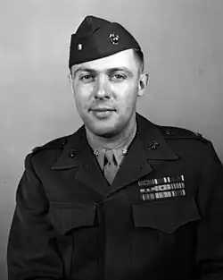 His battalion participated as the part of 1st Marine Division in the bloody Battle of Peleliu in September 1944 and received Navy Commendation Medal with Combat "V" and Navy Presidential Unit Citation for his service there.[2][5]