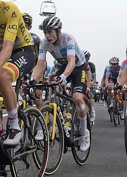 Jonas Vingegaard Hansen (Danish: [ˈjoːnæs ˈʋe̝ŋəˌkɒːˀ ˈhænˀsn̩]; né Rasmussen;[9] born 10 December 1996) is a Danish professional road racing cyclist who rides for UCI WorldTeam Visma–Lease a Bike.[10] Described as one of the best climbers of his generation,[11][12][13] his rivalry with Tadej Pogačar is considered one of the greatest of all time.[14][15] He is best known for winning the 2022 and 2023 editions of the Tour de France.