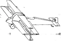 By 1931 there was still no working prototype, and Caldwell moved to Orangeburg, New York, and later to Madison, New Jersey.[5] A January 14, 1932 newsreel film shows the ornithopter being readied for a test. This was apparently attempted without success, by the otherwise unknown Emile Harrier. Additional funds were then raised by another stock issue in order to build a full-sized prototype at Teterboro Airport. He also apparently restarted his cyclogyro work, and an article appeared in one of the Popular Mechanics-like magazines showing the design equipped with a V-8 engine mounted in an odd twin-fuselage with the pilot and passengers below.
