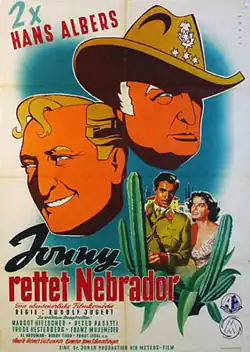 Jonny Saves Nebrador (German: Jonny rettet Nebrador) is a 1953 West German adventure film directed by Rudolf Jugert and starring Hans Albers, Margot Hielscher and Peter Pasetti.[1] The film is set in South America, but was shot in Ancona and Rimini, Italy. It was made by Bavaria Film at the company's Munich Studios. The film's sets were designed by the art directors Paul Markwitz and Fritz Maurischat.