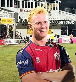 In August 2024, he earned a maiden Test call-up against Sri Lanka.[39] and was subsequently included in the England squad for a tour to New Zealand later that year.[40] However, injury meant he was unable to feature in any of the three matches.[41]