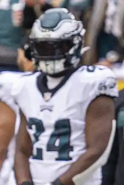Howard re-signed to a one-year contract on April 13, 2021.[87][88] He was released on August 31, 2021, and re-signed to the practice squad the next day.[89][90] Howard was called up to the active roster following an injury to starter Miles Sanders and soon established himself as the Eagles' lead back.[91] He rushed for 57 yards and 2 touchdowns on 12 carries in a 44-6 win against the Detroit Lions, followed by 71 yards and a touchdown on 17 carries against the Los Angeles Chargers.[92] The Eagles signed Howard to the active roster on November 10, 2021.[93] In Week 11 against the Saints, Howard rushed for 63 yards on 10 carries before he suffered a neck injury that sidelined him for two weeks. He suffered a stinger against the New York Giants in Week 16, but managed to play Week 17 against the Washington Football Team. He was placed on the COVID list on January 3, 2022.[94] He was activated one week later on January 10, missing just one game where the Eagles did not play their starters.[95] He finished the 2021 season with 86 carries for 406 rushing yards and three rushing touchdowns.[92]