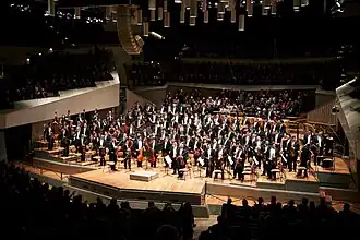In 2001, Abreu was honoured with a Right Livelihood Award and was honored with the World Culture Open Creative Arts Award in 2004.[14] Among his numerous awards are the Order of the Rising Sun, Grand Cordon (Japan, 2007),[15] the Glenn Gould Prize (Canada, 2008), the Puccini International Prize (Italy, 2008), the Q Prize with former student and protégé Gustavo Dudamel (USA, 2008) and honorary memberships at the Royal Philharmonic Society (2008, United Kingdom) and the Beethoven-Haus Society (Germany, 2008).[16] Abreu is also co-founder and vice-chairman of YOA Orchestra of the Americas.[17]