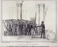 In 1842, Páez arranged to have the remains of Simón Bolívar repatriated from Santa Marta, Colombia, to the Liberator's hometown of Caracas.[5] His funeral procession was accompanied by exuberant honors before Bolivar's remains were entombed in the Caracas Cathedral.