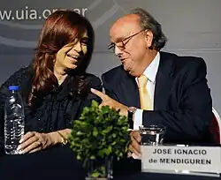 De Mendiguren returned to the private sector as a member of the UIA in 2004.[5] He was re-elected president of the UIA on 27 April 2011, in replacement of Héctor Méndez.[11] His second presidency corresponded to a period of political friendship with the government of Cristina Fernández de Kirchner, with whose administration the industrial sector had previously been generally at odds.[12]