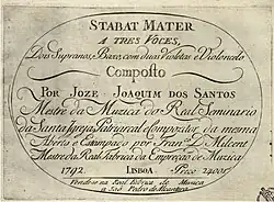José Joaquim dos Santos (? 1747–1801)[1] was a Portuguese music teacher and late Baroque-period composer who specialised in writing sacred music. He was listed by two authors[2] as being among Portugal's "most outstanding eighteenth-century composers."