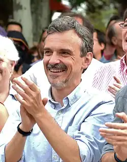 He ran as head of the Podemos list in the May 2015 regional election in Madrid;[7] elected member of the regional legislature, he became the spokesperson of the Podemos parliamentary group in the chamber. In December 2016, after the Ramón Espinar's victory in the Podemos regional primaries in Madrid in November 2016, López, considered a member of the errejonista faction, was replaced as spokesperson of the parliamentary group by Lorena Ruiz-Huerta.[8]