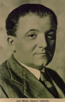 José María Gayarre Lafuente (8 February 1893 – 8 February 1968) was a Spanish journalist, football pioneer, and sports leader.[1] Despite never playing football, he was one of the most important figures in the amateur beginnings of this sport in Zaragoza, being noted for his prominent role in promoting football in the city and for founding and presiding over the first football clubs in the region, such as Sociedad Gimnástica Zaragozana in 1912 and Iberia Sport Club in 1917,[1][2] and later Real Zaragoza in 1932, holding the presidency for two years.[3] He was also the fundamental head behind the foundation of Aragonese Football Federation in 1922, which he also presided.[1]