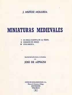 - ^ Cristóbal L. García Gallardo, Francisco Martínez González, María Ruíz Hilillo Los músicos del 27 2010 "Sin duda, figuras destacadas como las de Jesús García Leoz (1904-1953), José Muñoz Molleda (1905-1988), Fernando Obradors (1897-1945), José María Franco Bordóns (1894-1971) Jesús Arámbarri (1902-1960), Gaspar Cassadó ..."