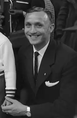 Santamaría was first called up to play for Uruguay in the 1950 FIFA World Cup in Brazil, being selected to fill an inside forward slot in the squad but seeing the request denied by his club on the grounds that he was a defender.[3] Four years later, however, he was an integral part of the team at the World Cup in Switzerland, helping them to a final fourth position and earning a total of 20 caps.[9][5]