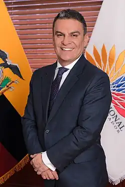 José Serrano was born 19 November 1970 in Cuenca, Ecuador.[1] He is a politician with a long career in the public sector.[2] He served as Interior Minister from May 2013 until November 2016, so he was elected to head the list of candidates for the National Congress, being elected as the most voted nationwide with 39% by Alianza-Pais party followed by a right-wing political party CREO with the 15%.[3] [4] He served as a President of the National Congress of Ecuador from May 2017 until March 2018 after his dismissal by the National Congress, for alleged conspiracy.[4]