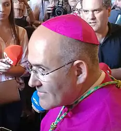At the end of June 2018, Pope Francis named de Mendonça Vatican archivist and Librarian of the Holy Roman Church as of 1 September and appointed him titular archbishop of Suava.[2] On 28 July, Archbishop Manuel Clemente, Cardinal Patriarch of Lisbon, consecrated him a bishop assisted by Cardinal António Marto, Bishop of Leiria-Fátima, and Teodoro de Faria, Bishop Emeritus of Funchal who had ordained him a priest in July 1990.[23]