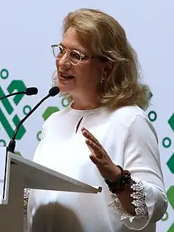 Josefa González Blanco Ortiz Mena (born 9 March 1965)[1] is a Mexican ecologist, politician and diplomat from the National Regeneration Movement who was the Secretary of Environment from 2018 to 2019.[2] She has served as the Mexican ambassador to the United Kingdom since 23 April 2021.[3] On 9 June 2021, she presented her credentials to Queen Elizabeth II at Buckingham Palace accrediting her as Mexico's representative to the United Kingdom.[4]