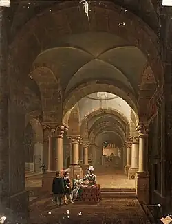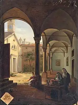 In 1831, he visited Milan, where he took lessons from Giuseppe Molteni.[3] He began by copying Molteni's works, but was soon painting from nature and assisting with the restoration of several canvases. The following year he returned home, by way of France, and established his own studio in Barcelona, where he specialized in portraits. In 1835, he made a second trip to Italy with his good friend, the physicist, Joan Agell i Torrents. While there, Agell studied electricity and Arrau produced a painting of the Convent of Santa Caterina and a portrait of his friend.[6]