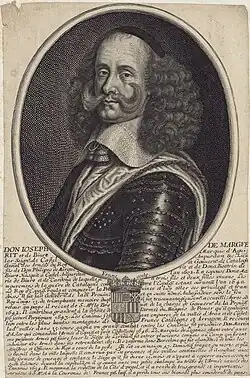 Josep de Margarit i de Biure (1602, Castelló d'Empúries–1685, Perpignan) was a leader of the forces of the Generalitat in the Reapers' War.