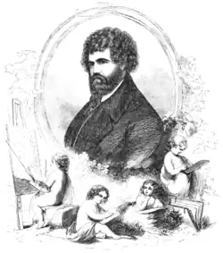Originally named Joseph Emes, he was born in Roxbury, New Hampshire.[1] Ames began painting at a young age. At the age of twelve Henry Theodore Tuckerman wrote about one of his paintings. After moderate success at home in Saugus, Massachusetts, he left for Boston in 1841. While in Boston, Ames tried to replicate the style of Washington Allston. In 1848, Ames traveled to Rome, where he painted a portrait of Pope Pius IX that was featured at the National Academy of Design's annual exhibition in 1850. When he returned from Italy he was commissioned by Rufus Choate, Daniel Webster, and Abraham Lincoln. He kept a studio in Boston in Amory Hall (ca.1849),[2] and later on Tremont Street (ca.1856),[3] and then on Summer Street.[4] Ames exhibited at the Boston Athenæum, the National Academy of Design, and the Pennsylvania Academy. He eventually moved to Baltimore, and then to New York, where he died of a "brain fever". He died on October 30, 1872.[1]