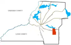 The Joseph Chaires Plantation's northern border was located at the southeast tip of Lake Lafayette. The property extended southward across Old St. Augustine Road. Today that land encompasses part of U.S. 27, Louvinia Drive, County Road 2197 (Williams Road), County Road 2196 (Old St. Augustine Road), County Road 2195 (WW Kelly Drive) as far south as County Road 259 (Tram Road) near Lake Erie and Big Lake.