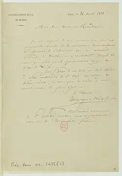 Joseph Daussoigne-Méhul (10 June 1790 – 10 March 1875) was a French composer and music educator. He served as the first director of the Royal Conservatory of Liège from 1826–1862; having been appointed to that post by William I of the Netherlands. In addition to his duties as director, he also taught courses in harmony and composition at the school. Among his notable pupils were Adolphe and Caroline Samuel, César Franck, and Jean-Théodore Radoux, the latter of whom succeeded him as conservatory director. In 1859, he was made a Commander of the Order of Leopold.[1]