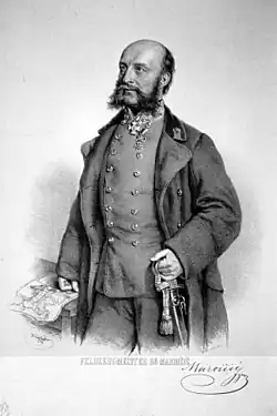 Joseph Maroicic was born on 6 April 1812 in Oberswidnik, in the Sáros County of the Kingdom of Hungary (present-day Slovakia). His father, Georg, was elevated to the status of baron in the Austrian nobility on 15 April 1830 for his services.[2] Following in the footsteps of his father, Joseph Maroicic embarked on an army career and enlisted at the infantry cadet school on 21 October 1825.[2] In 1830 he became an ensign in the 60th Infantry Regiment. Promoted to lieutenant in 1831 and to first lieutenant in 1834, Maroicic was posted to the General Staff. He was promoted to captain in 1843.[3]