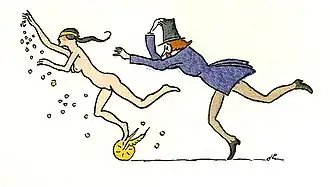Joseph Hémard, a popular French book illustrator, was born in Les Mureaux, France, a small town on the Seine, northwest of Paris, on 2 August 1880. He died on 9 August 1961 in Paris.[1] He was a prolific artist. During the early years of the 20th century he published cartoons and comics in illustrated newspapers like Le Pêle-mêle or Le Bon Vivant. He also designed costumes and sets for several operas, patterns for printed textiles, bookbindings, posters and even a facade for a bar in the 1925 Paris Exposition of Decorative Art.[2] His lasting fame, however, lies in his book illustrations – always distinctly French in character and often erotic – which he produced for a great number of titles including many classics of French literature such as Le Malade Imaginaire (1920), Gargantua et Pantagruel (1922), Jacques Le Fataliste (1923), Cyrano de Bergerac (1927), and Aucassin et Nicolette (1936).[3]