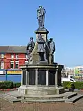 Bootle War Memorial | King's Gardens, Bootle, Merseyside | 1922 | Four statues on a circular plinth with panels | Bronze and sandstone | Grade II* | Q15978913 | [5][12] | |